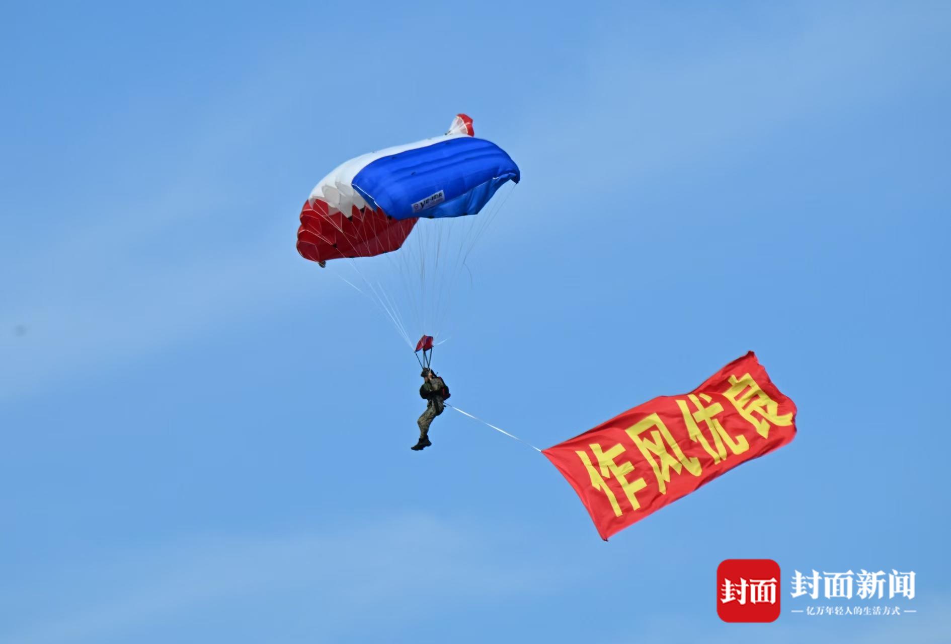 9月20日,在2025年空军航空开放活动和长春航空展中,飞行表演环节,空军跳伞队上演“空中芭蕾”。